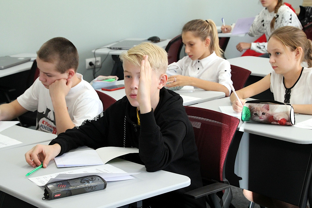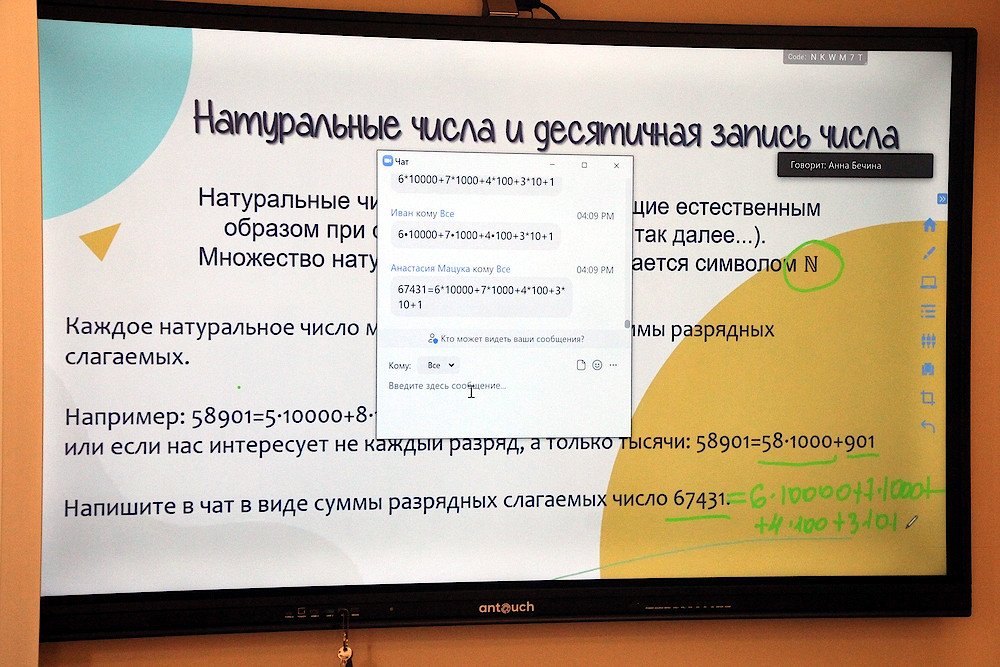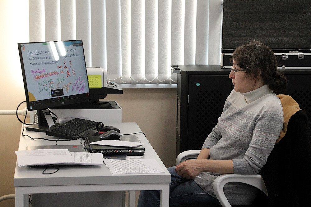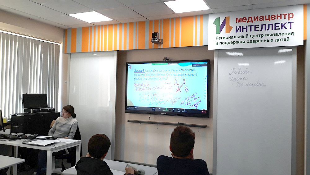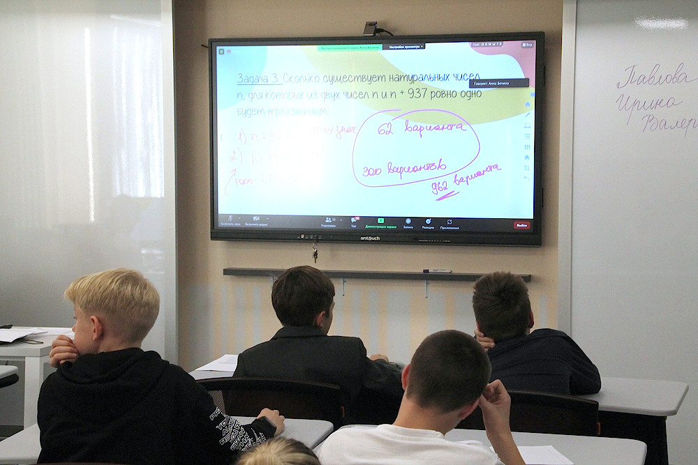 Первые занятия по подготовке к олимпиадам состоялись по математике. Лектор работал одновременно с 18 районами удаленно. Конечно, возникли организационные трудности, но они были быстро решены и школьники погрузились в решение задач.