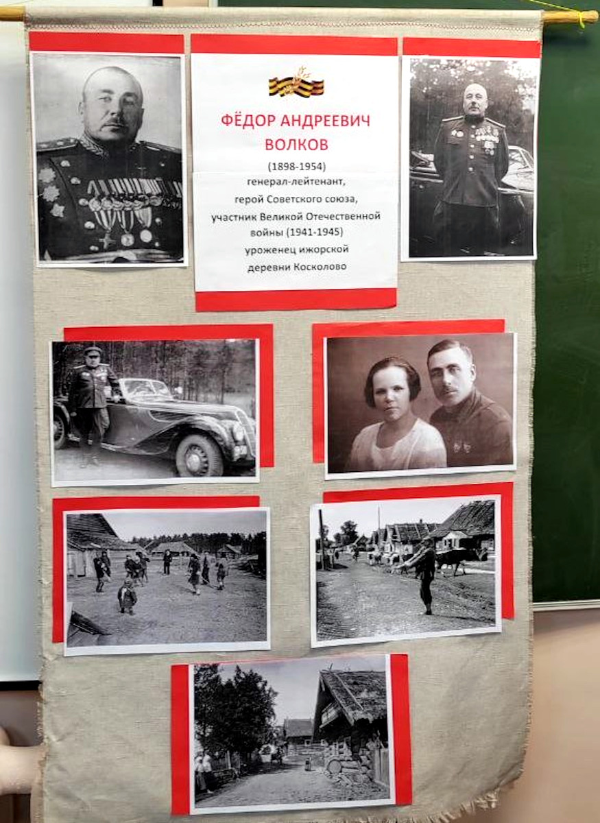 К 125-летию со дня рождения Волкова Федора Андреевича, уроженца д. Косколово, участника 4-х войн, кавалера 3-х солдатских Георгиевских крестов, 2-х орденов «Красное Знамя РСФСР», Героя Советского союза в МБОУ «Вистинской СОШ» совместно с сотрудниками Ижорского музея для обучающихся 1–11 классов были проведены уроки памяти, посвященные выдающемуся земляку, а также занятия в Комнате боевой славы. Дети познакомились с биографией и подвигами Героя.