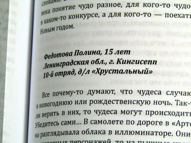К Всероссийскому Дню библиотекаря у юных журналистов ЦЭВиОД появилась прекрасная новость! В Новогодней книге «Артека» 15 смены 2018–2019 г.г. был напечатан рассказ обучающейся ДТО «Студия детского ТВ «Яркая молодёжь» МБУ ДО «ЦЭВиОД» Кингисеппского района Федотовой Полины на тему «Обыкновенное чудо».