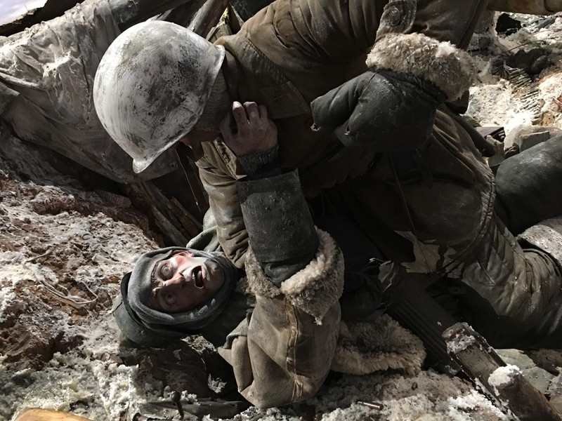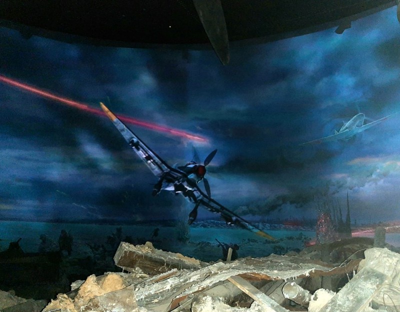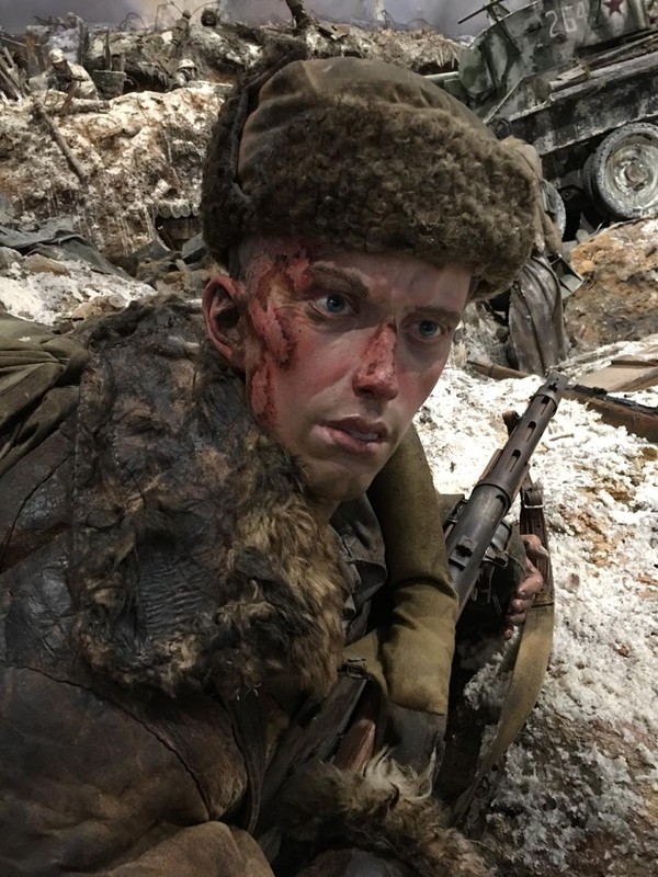 Далее мы отправились к следующей точке нашего маршрута — Музею «Прорыв блокады Ленинграда». Музей находится на берегу Невы в деревне Марьино недалеко от Кировска. Перед зданием музея стоят танки, принимавшие участие в операциях по прорыву блокады. Кроме военной техники, здесь представлены несколько образцов оборонительных заграждений. В павильоне расположена реконструкция, представляющая собой стоп-кадр ночного наступления советской армии 13 января 1943 года. На панораме присутствуют найденное на поле боя оружие и вещи. Герои панорамы сделаны по прототипам реальных людей, чьи истории жизни рассказали нам на экскурсии.