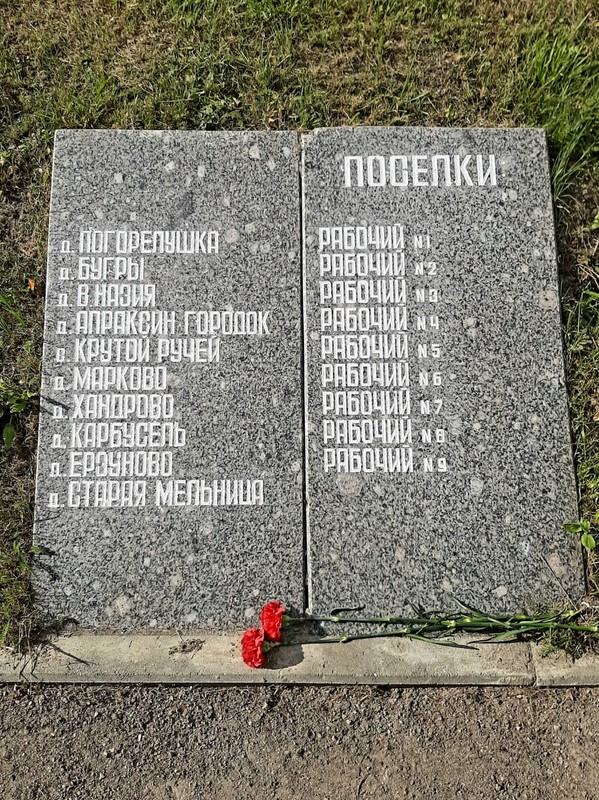 Следующей остановкой, которую мы совершили, был мемориал «Синявинские высоты». Не буду рассказывать страшную историю боёв. Нам её поведал замечательный экскурсовод Роман Валентинович, который сопровождал нас в течение всей поездки. Нами была совершена прогулка по аллее Славы. Оформление аллеи началось в 1975 году, вдоль неё установили 64 мемориальные плиты с выбитыми фамилиями воинов, павших в Сиинявинских операциях 1941–1943 годов. Если присмотреться, вся земля там изрыта траншеями и воронками.
