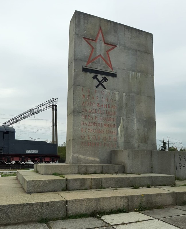 Далее мы отправились на ж/д станцию Петрокрепость к мемориалу «Стальной путь». Памятник состоит из стелы высотой 8 метров, на которой находятся барельефы железнодорожников и мемориальная надпись, повествующая об их подвигах в 1941–1944 годах. Рядом со стелой на вечную стоянку установлен паровоз ЭМ-721-83 1933 года постройки. 18 января 1943 года части Красной Армии прорвали блокаду Ленинграда. В полосе прорыва железнодорожники в короткий срок построили железную дорогу Шлиссельбург–Поляны, благодаря которой Ленинград получил прямое железнодорожное сообщение с Большой Землёй. Этот железнодорожный путь получил название «Дорога Жизни».