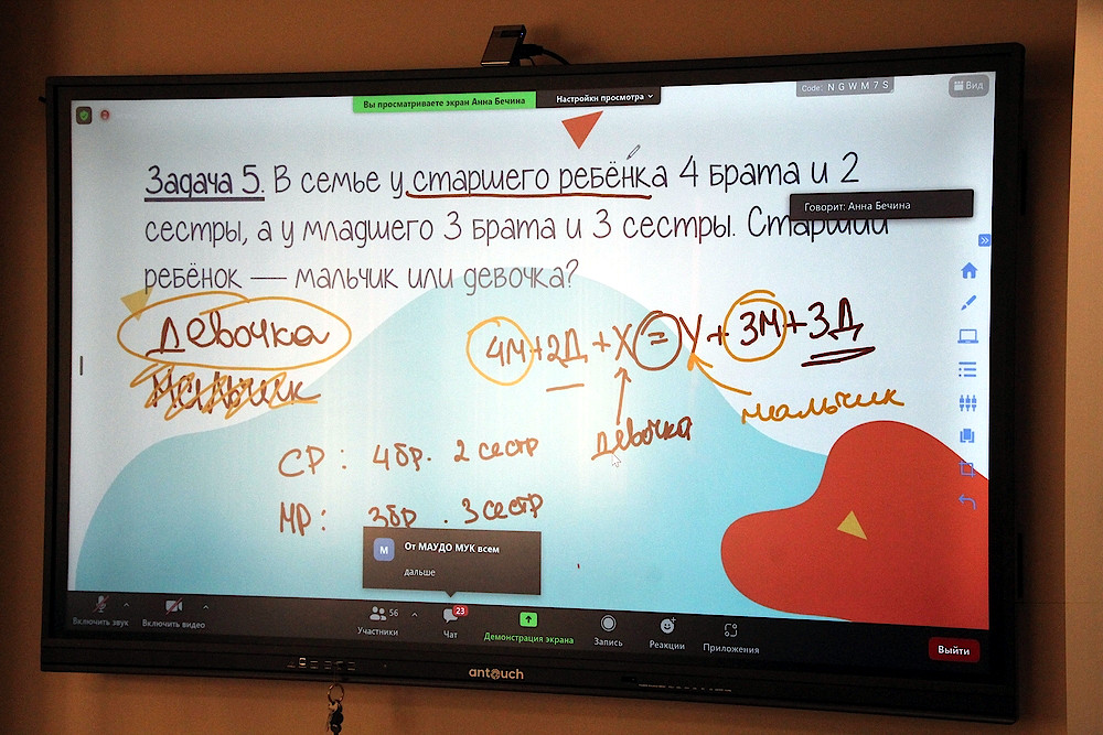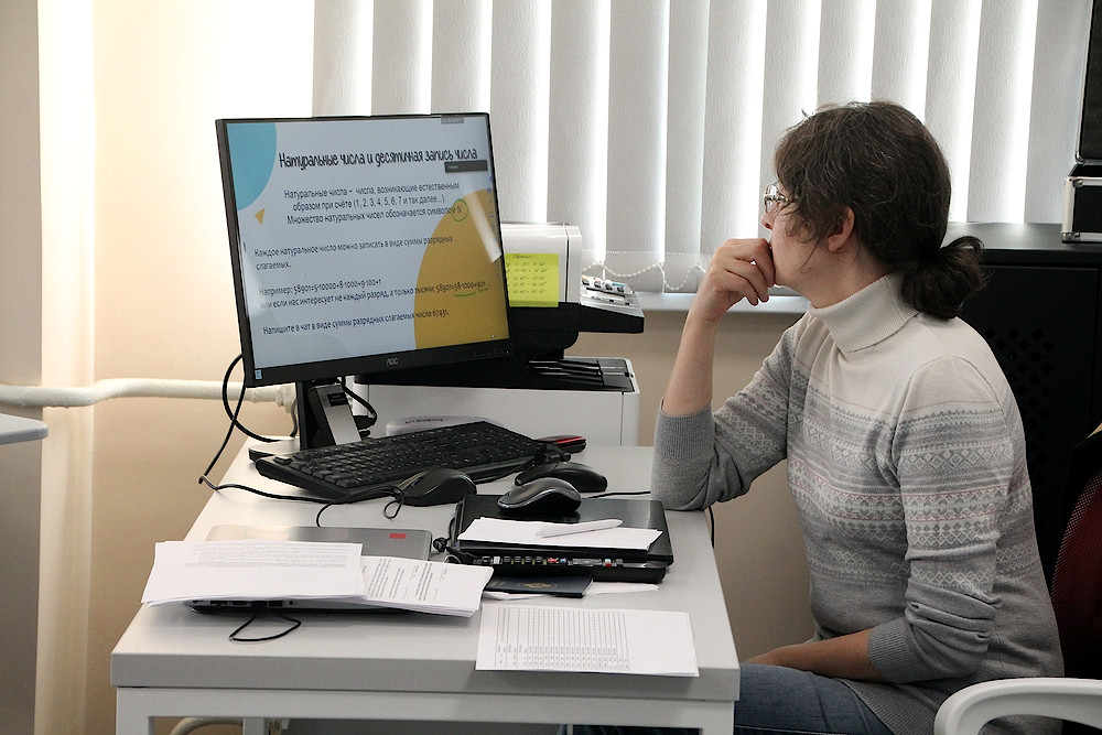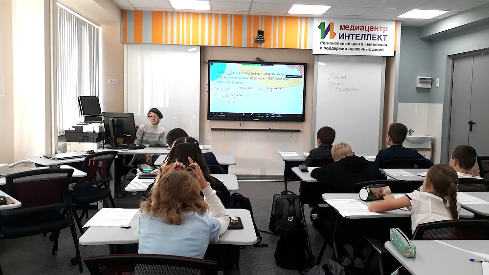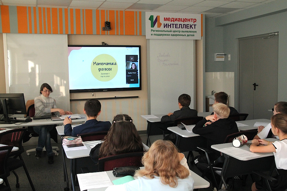 Первые занятия по подготовке к олимпиадам состоялись по математике. Лектор работал одновременно с 18 районами удаленно. Конечно, возникли организационные трудности, но они были быстро решены и школьники погрузились в решение задач.